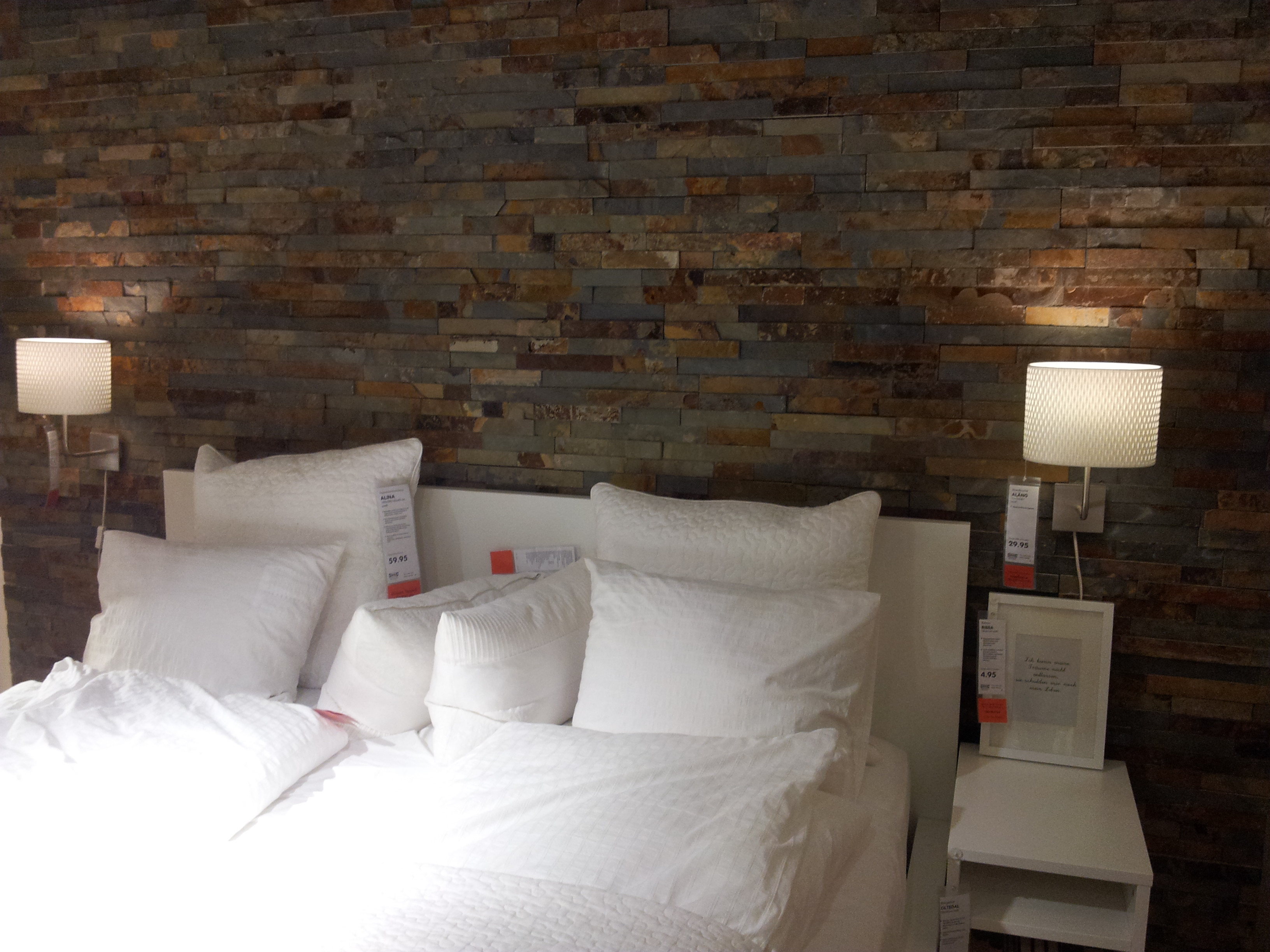 The whole look is great, except that lamp, that is a bit too supernatural for me. But what I really love is the wall, which unfortunately, is not for sale. If you can’t see it is shades of lovely greys, blues and browns of a copper like slate.