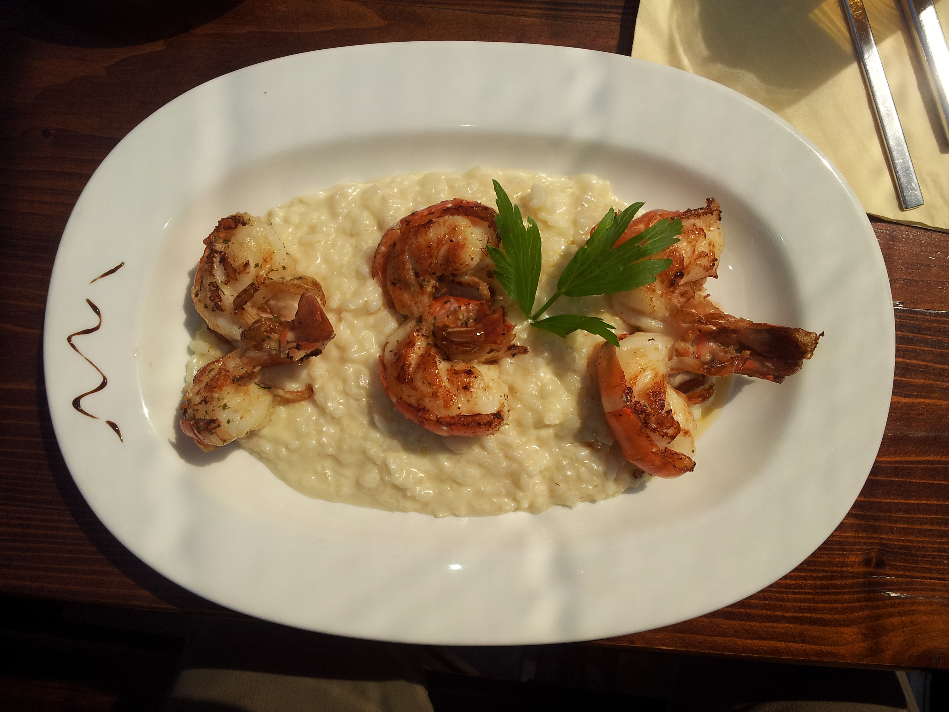 And of course my main dish was absolutely delicious, the special of the day, white wine risotto with fresh scampi.