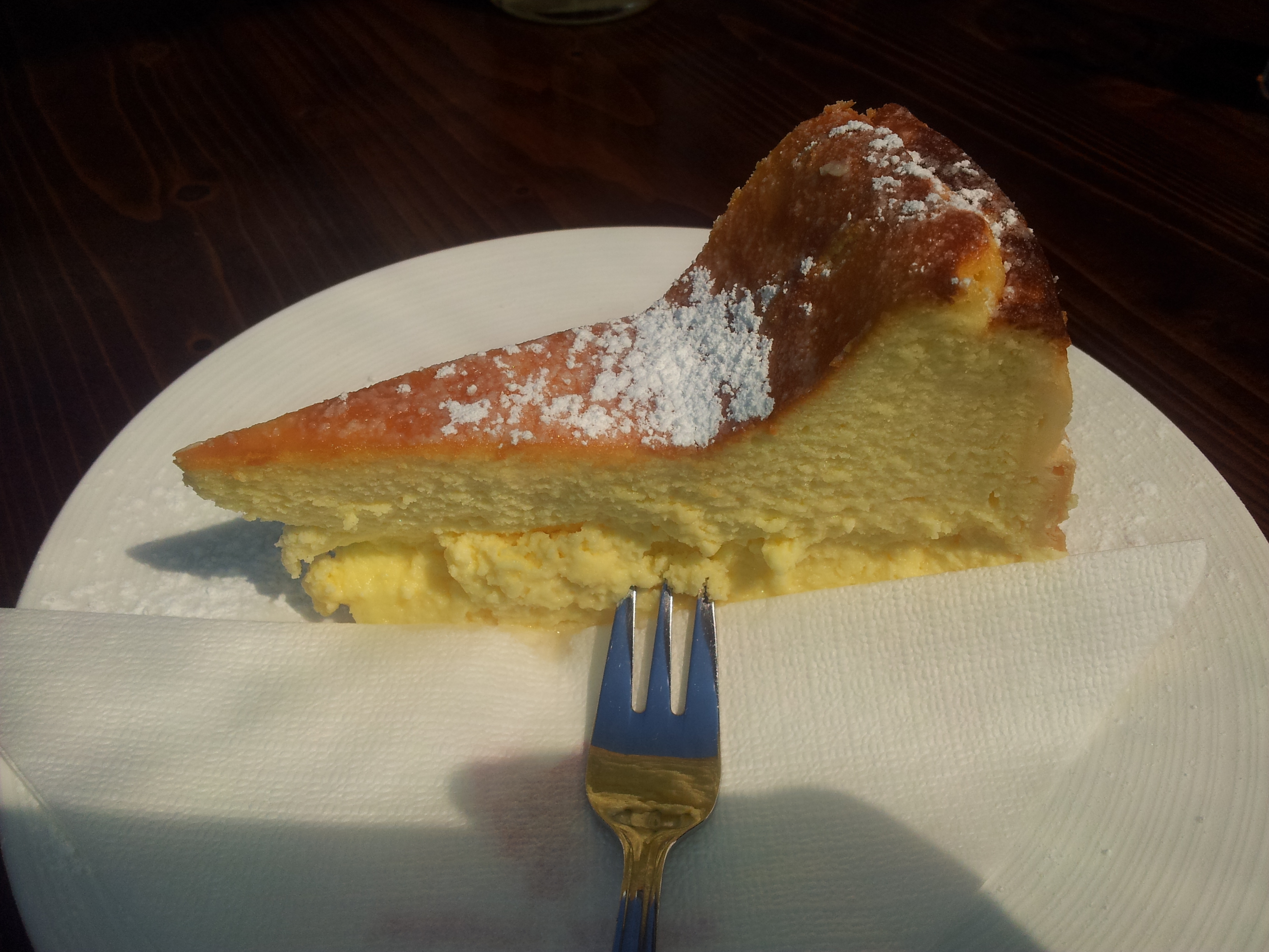 Everyone got lovely deserts, this one was Countryboy’s: Topfenkuchen AKA Quarkkuchen in Germany. Which is lighter and fluffier than, but nevertheless somewhat resembles, an American cheese cake.
