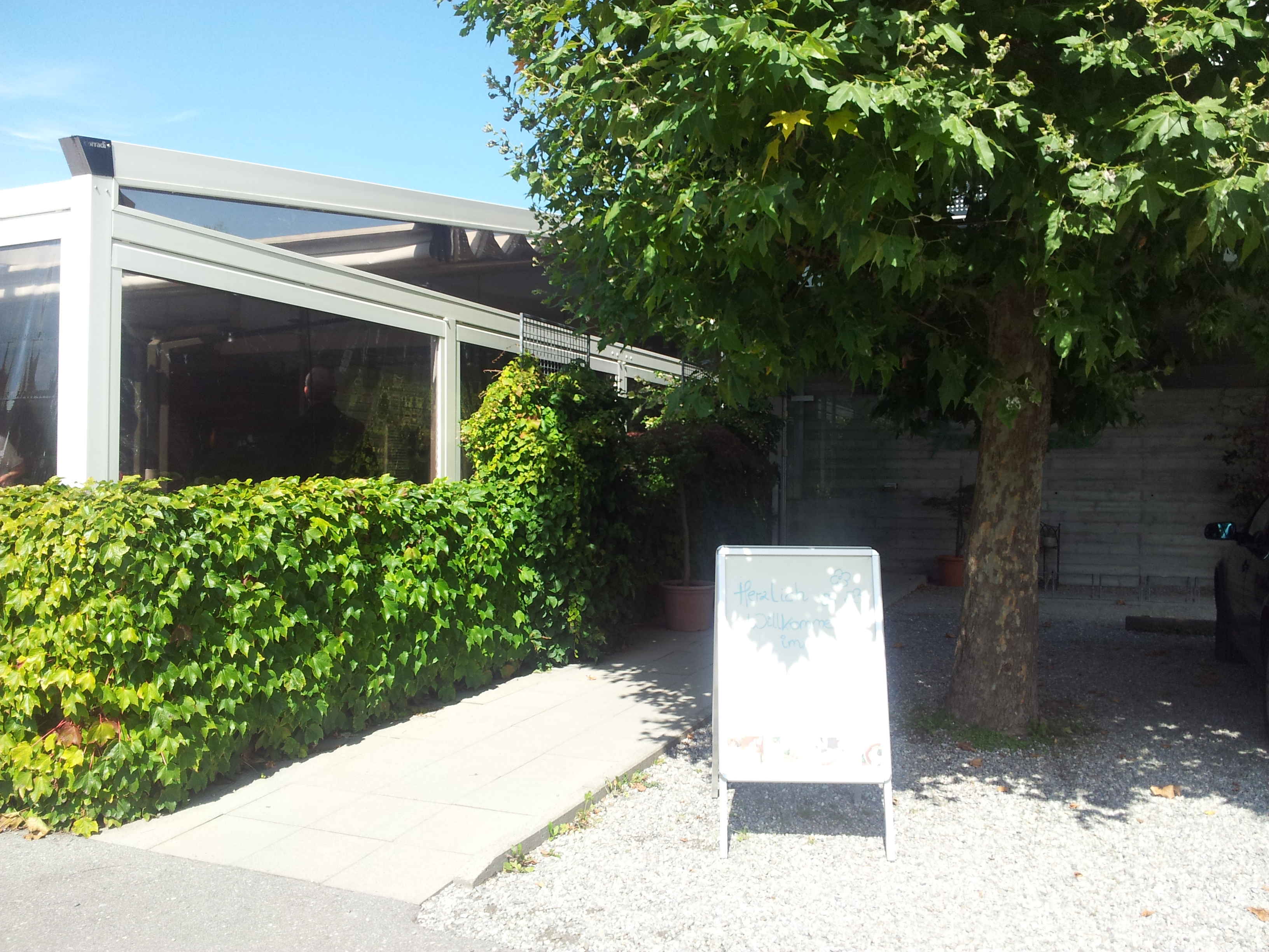 After our ca. two hour hike, we were all happy to finally find room for 8 in this lovely restaurant in nearby Fussach, Voralberg. Located right on the harbor, it was a beautiful location and had this lovely conservatory where the roof came off so you could enjoy the sunny blue skies and mild weather, without the breeze off the water.