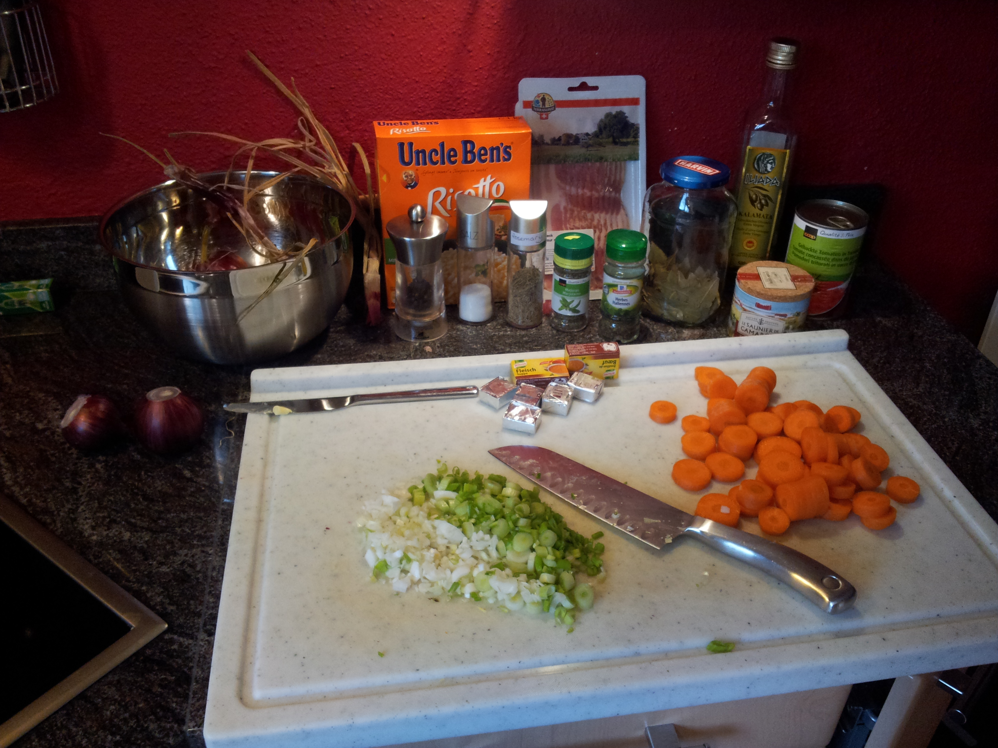 The bacon assured for a delightfully full flavor, the risotto thickened it and gave it substance, and the veggies chosen, both added a deliciously delicate, and yet, noticeably Italian (or Ticino) flavor.