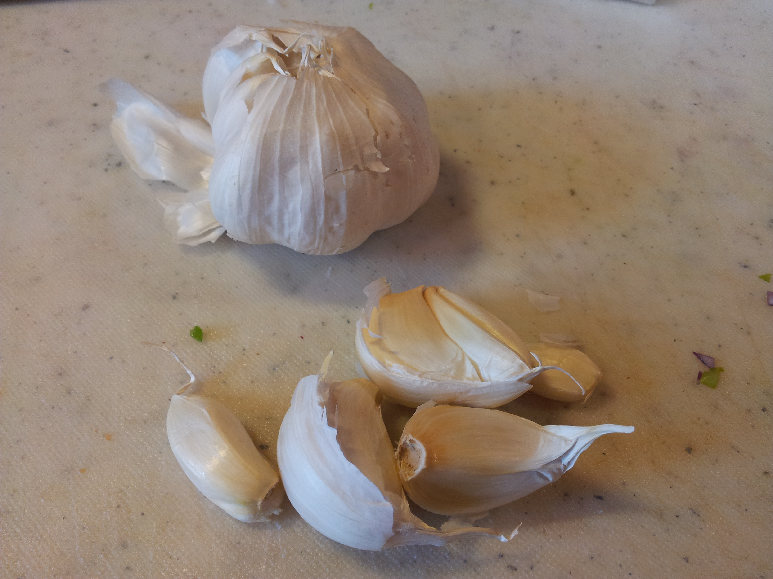 Next I added 4 pressed garlic cloves.