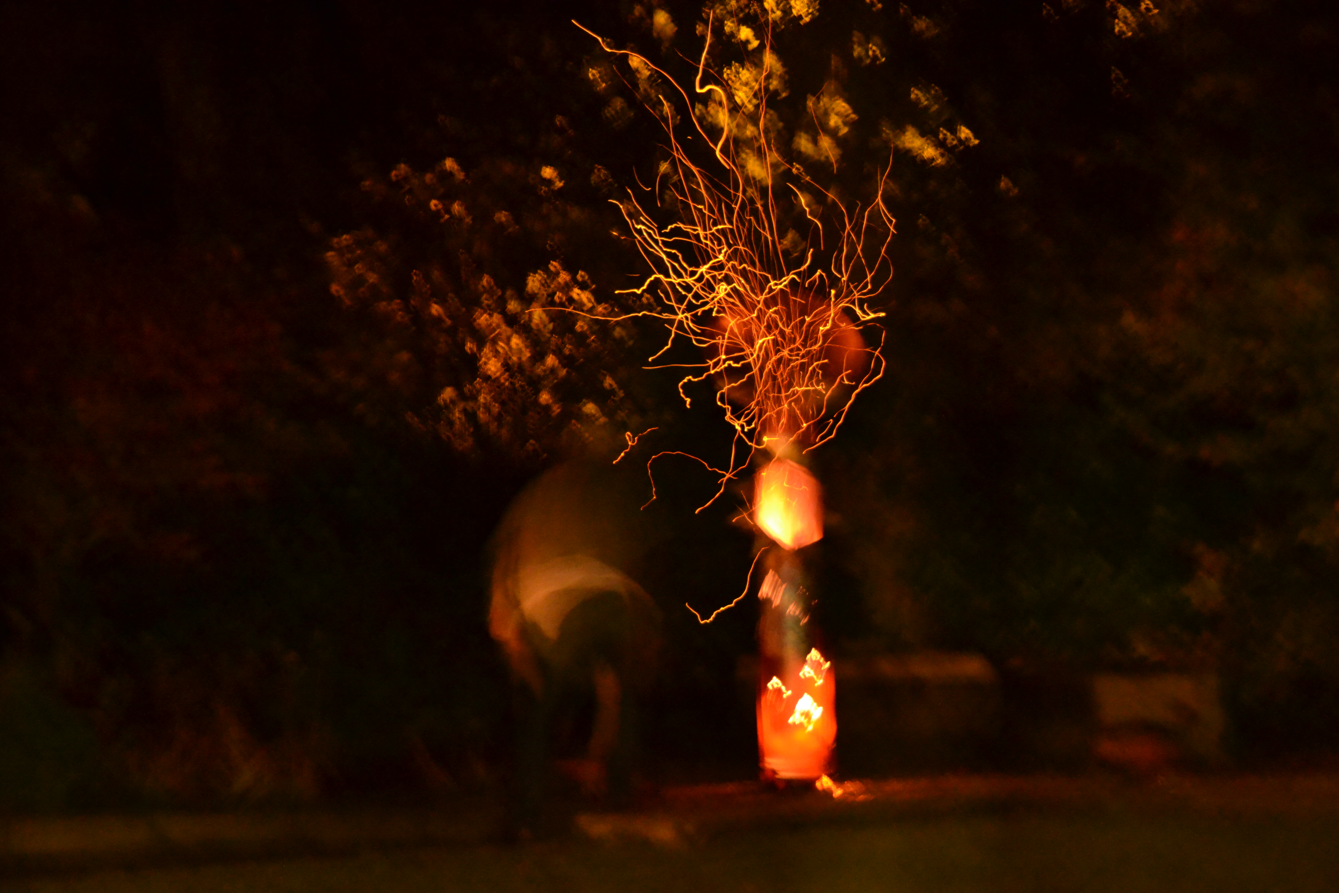 Yves fired up our outdoor chimney, this is a photo I took of him busily stoking the fire. It was taken with out flash (I think), so it came out very ‘artsy’.