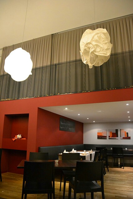 I must say it has a very charming location, located in this little village tucked up in the hills above Lake Constance and right next to the church. It has a lovely terrace to sit out in the summer, which probably offers a beautiful view. Unfortunately we were there at night and it is November so I can only show you a peak inside.