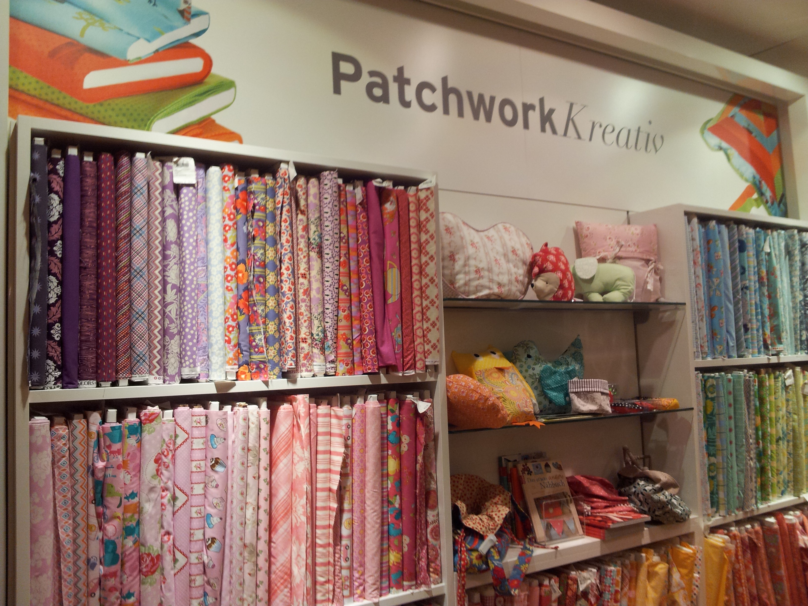 In most German cities there is a ‘Karstadt’ department store and in the home department they have a significantly sized department for home decor, including sewing, knitting, and quilting supplies. Although it is not the same as an independent quilt shop and you don’t get the service you would at one, it is still exciting to see all the fabric!