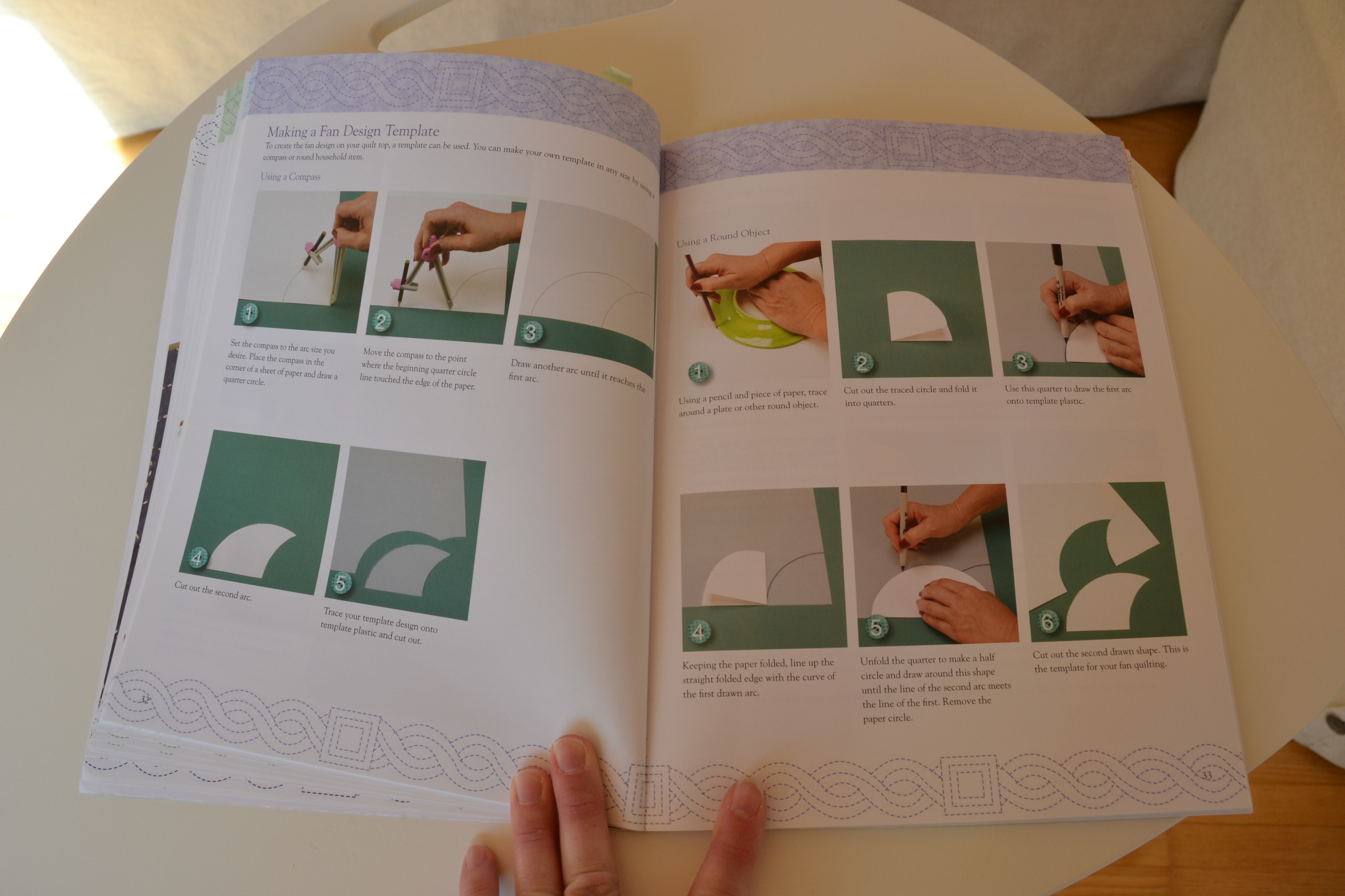 I love the clear and simple instructions Carolyn uses to describe the process. This book is an excellent resource for hand quilting. (I bought it on our US Road Trip last summer at Friends & Co. Quilt Shop which is an amazing bricks and mortar store in Cody, Wyoming. You can click here to go to there website. Looking at the photos of their store, I so want to go back. Love their Bucking Bronco fabric!!)