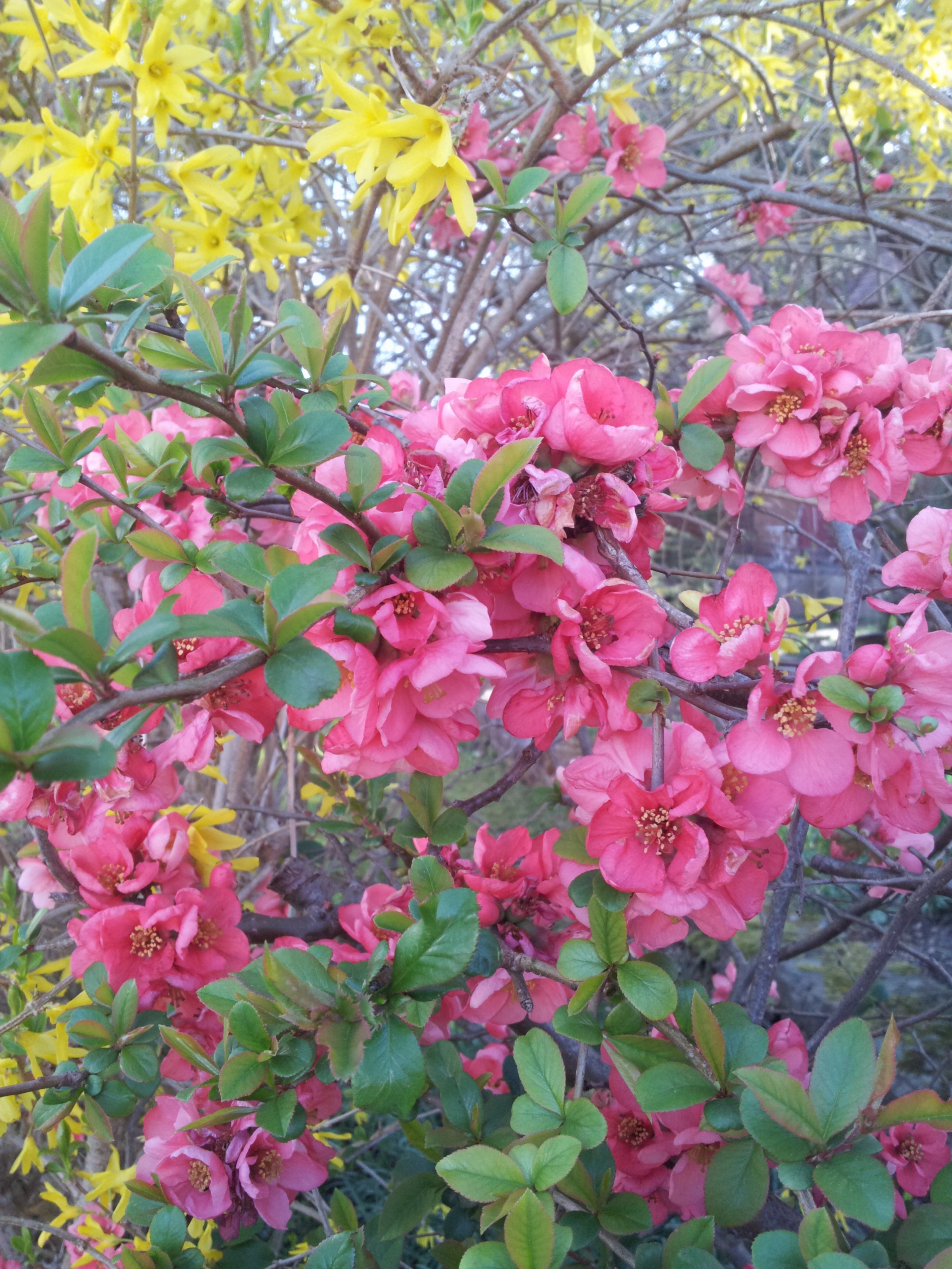 These coral blossoms are on one of my favorite bushes. I would really like to get one of these for my garden.