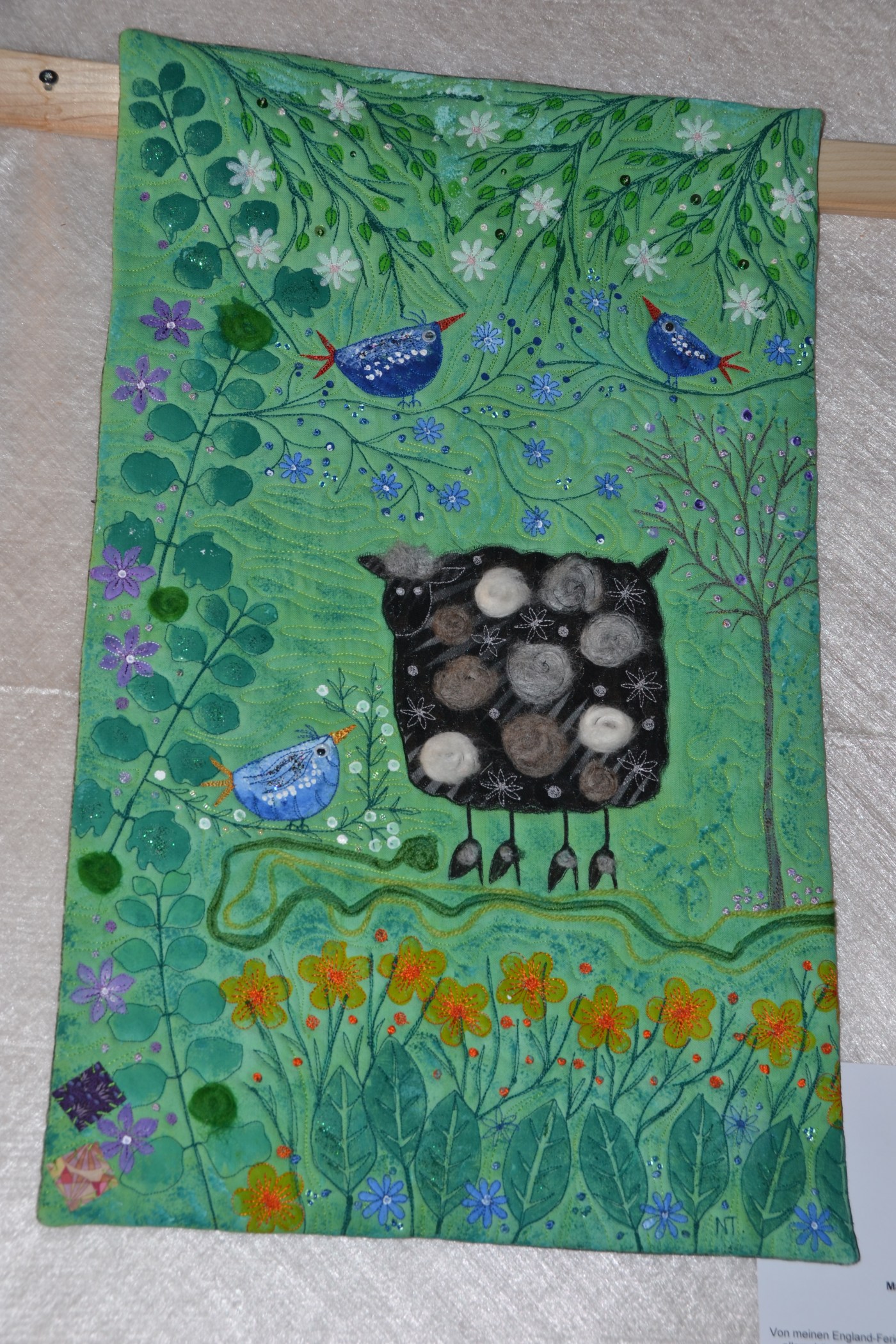 The next quilt had bits of shells and other finds from a hike in Scottland, sewn directly on to the quilt.