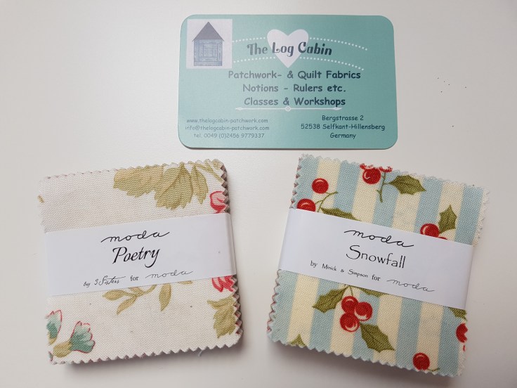 Finally the last of my fabric purchases, was two mini charm packs from Moda. Maybe they are called Candy’s? In any case I thought they would work for some English Paper Piecing hexies I want to make.